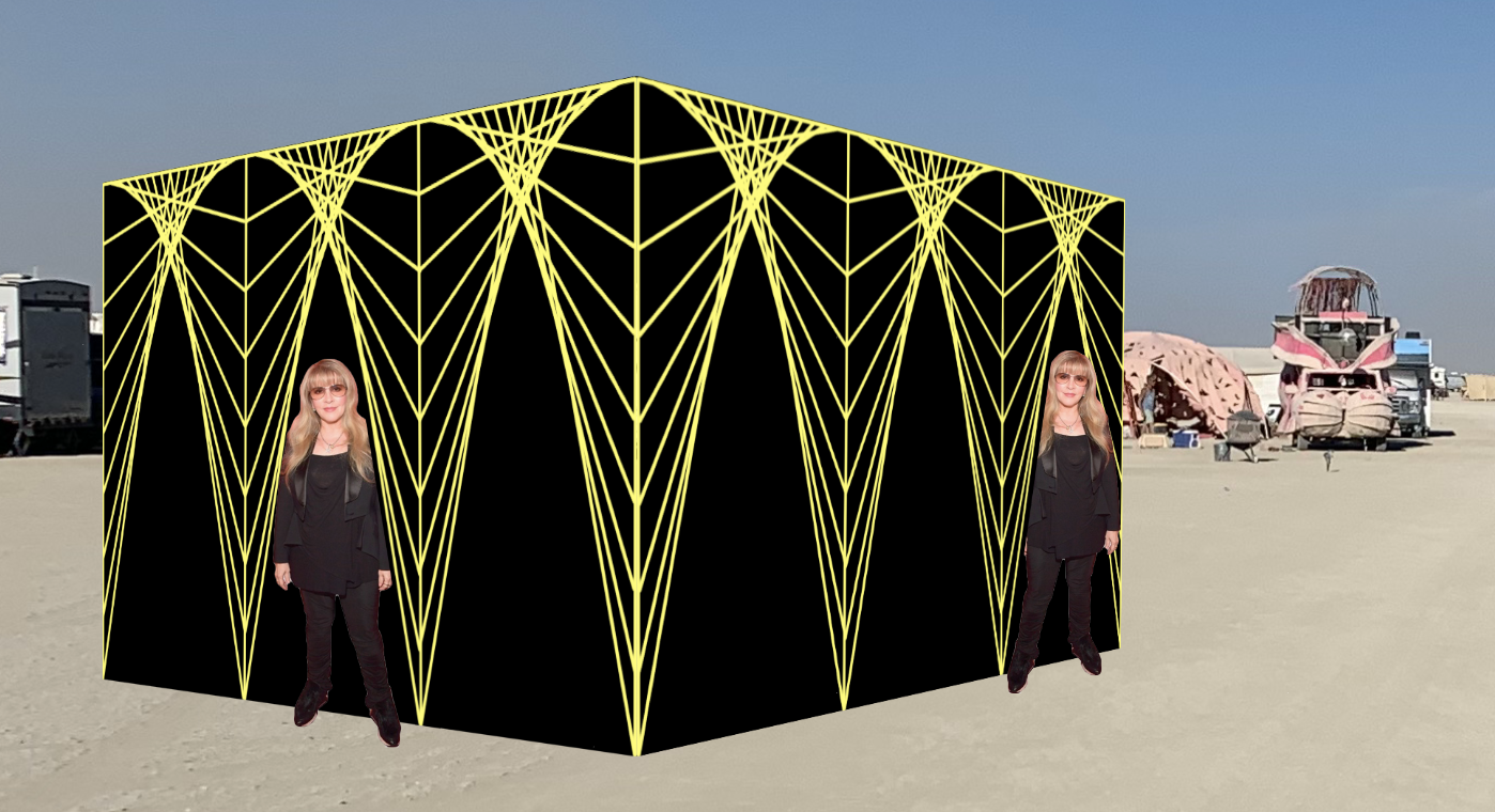 The Shrine to Nicks is envisioned as a roadside temple for Burning Man 2023. It will be a space to pay homage to famed singer-songwriter Stevie Nicks and the goddesses Nyx & Hecate.